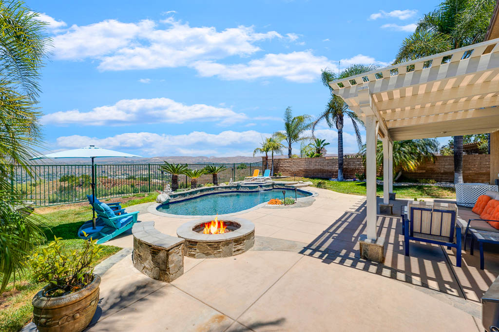 This single-family house is conveniently located in the hills behind Miller Park in Moorpark, California. One of the safest cities in California. Highly rated schools, convenient to shops and restaurants, in Moorpark. Thousand Oaks and Simi Valley. Easy access to 23, 118 and 101 freeways that leads you to Malibu Beach, Santa Monica and downtown Los Angeles. Recently renovated home with fantastic views of the hills of Moorpark. Pebble Tec saltwater pool + spa. Portable pool fence. Custom stone surfaces clear coated in 2020. Inside, eat-in kitchen, quartz countertops, island, stainless steel appliances. Leads into family room with a fireplace. Engineered wood flooring + wood like bathroom floor tile. High ceilings in bring in the natural light to show off the extensive Views of Ventura County hills beyond the backyard. Balcony off master with more of the view with beautiful sunsets. Spa tub in master suite + huge, organized, walk-in closet. Built-in office downstairs with wall units. Another smaller office upstairs plus loft and 4 bedrooms. Enjoy resort-like backyard with firepit, covered patio, pool, and spa with views of Miller Park and open space below.
