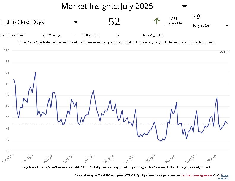 - It took 52 days on average to sell a home in July.