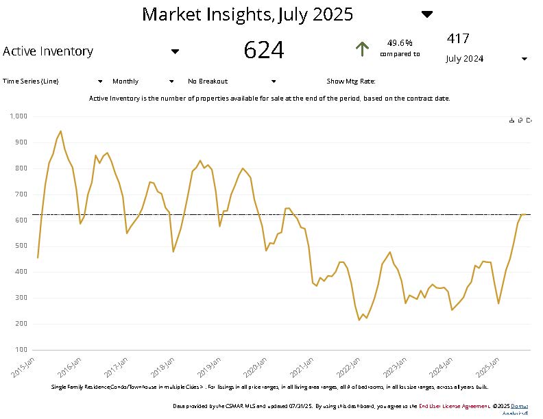 - July ended with 624 homes for sale.