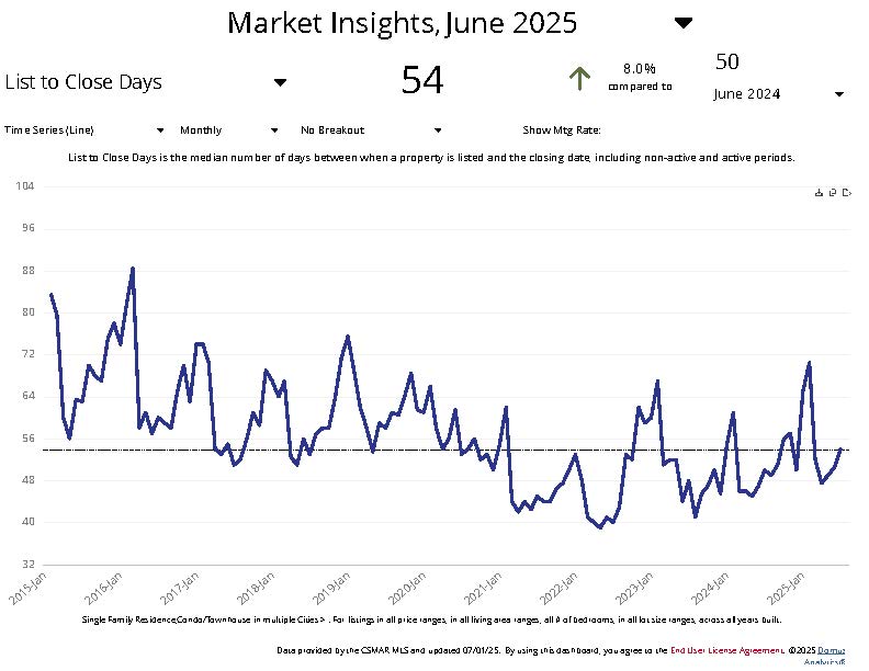 - Homes are taking longer to sell – 54 days on average