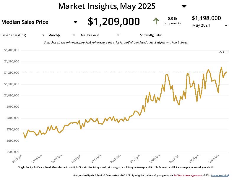 - The median price of a Conejo Valley home was up in May to $1,209,000.