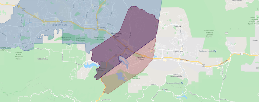 Thousand Oaks (blue) | Westlake Village Township (purple) | City of Westlake Village (red)