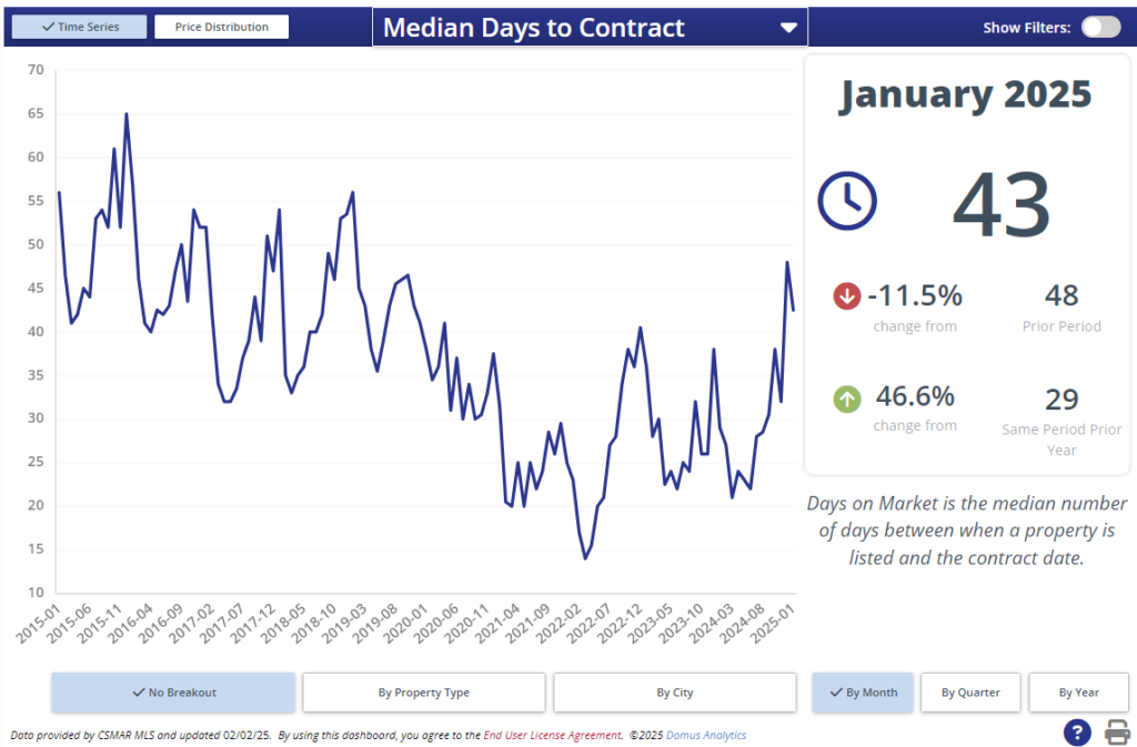 - January saw a 70% increase in new listings compared to last year, and this trend is likely to continue, peaking around May or June.